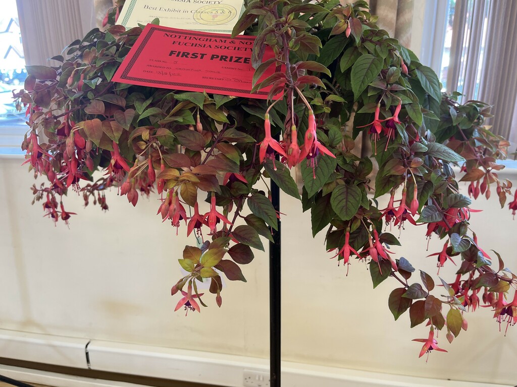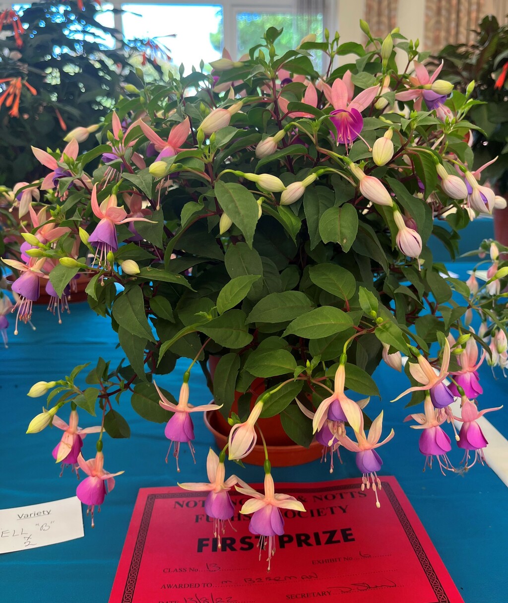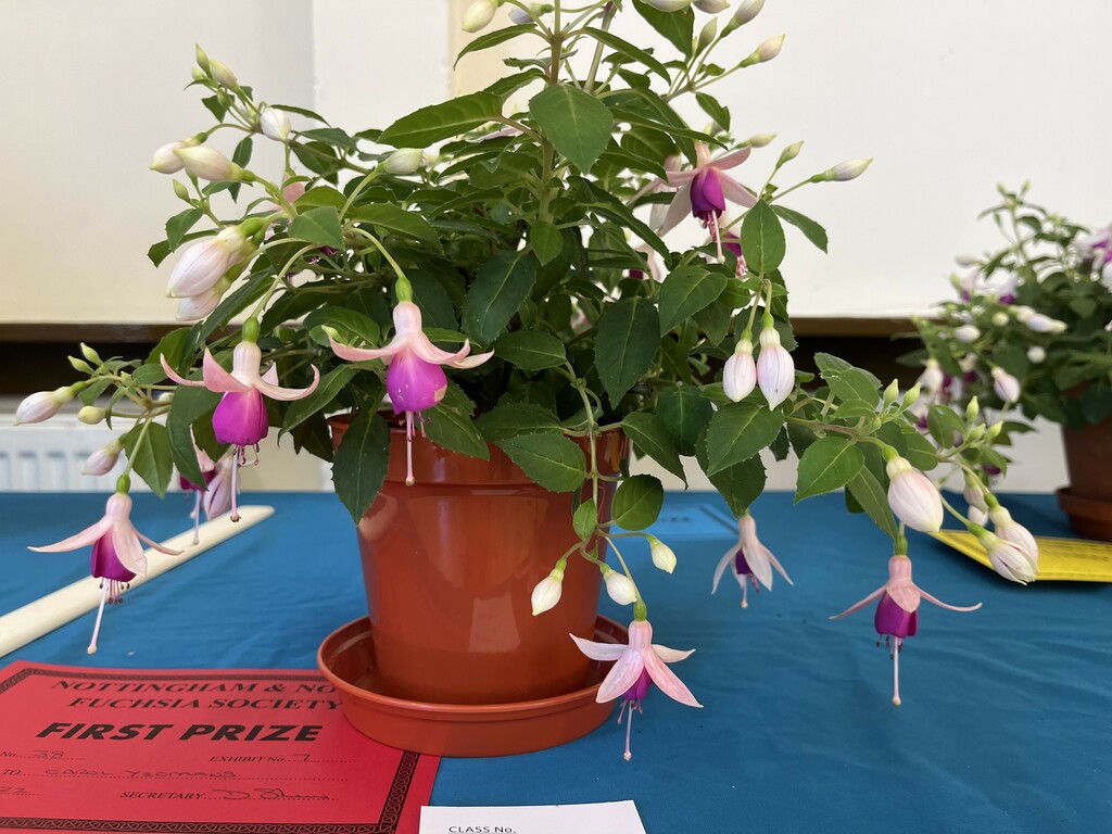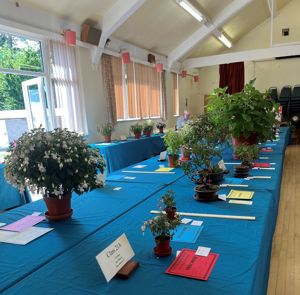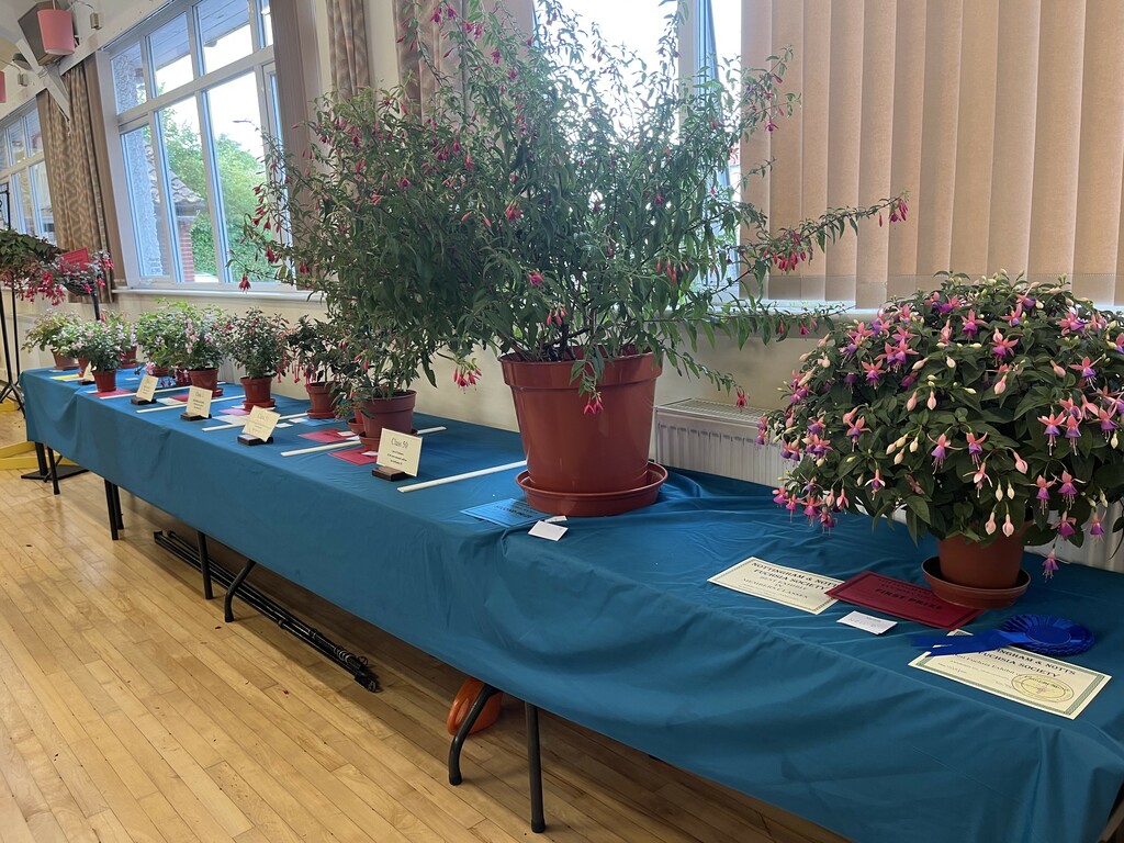 CHRISTINE COLE Nottingham & Notts Challenge Trophy Winner Class 8 HOWARD KILBOURN Christine Fenson Trophy Winner Class 9 HOWARD KILBOURN Hanslope Trophy Winner Class 11 LYNDON CLEMENTS Cliff Gadsby Memorial Trophy Winner Class 12 LYNDON CLEMENTS Arena Promotions Mark Wrixton Cup Winner Class 13 MALCOLM BEERMAN Hanslope Bowl Winner Class 14 CHRISTINE COLE Rosette 1 Winner Class 18 JAYNE DAYKIN Rosette 2 Winner Class 19 RENEE WILSON Rosette 3 Winner Class 22 DEREK SHAW Rosette 4 Winner Class 25 PETER HARVEY Christine Ann Cocking Bowl Winner Class 30 PATRICIA DYSON G H Roe Rose Bowl Winner Class 31 MALCOLM BEERMAN Nottingham & Notts Shield Winner Class 32 ROB SCOTT Rowley Trophy Winner Class 33 MALCOLM BEERMAN The Frank Otter Trophy Winner Class 34 MALCOLM BEERMAN Arena Promotions Scroll (Triphylla) Winner Class 35 HOWARD KILBOURN Joe Bragg Memorial Trophy Winner Class 38 CAROL YEOMANS Arena Promotions Scroll Winner Class 39 PATRICIA DYSON The Smith Trophy Winner Class 42 JAYNE DAYKIN Katie Sisson Bowl Winner Class 43 NIGEL HUGHES Dobson Williams Trophy Winner Class 44 CAROL YEOMANS George Roe Memorial Trophy Winner Class 45 LAWRENCE COLE Ben Calton Trophy Winner Class 49 GEOFF SMITH Harvey Sisson Bowl Winner Class 50 JUNE LEMON-SMITH Fuchsia Glass Vase (donated by Lawrence & Christine Cole) Winner Class 52 CAROL YEOMANS