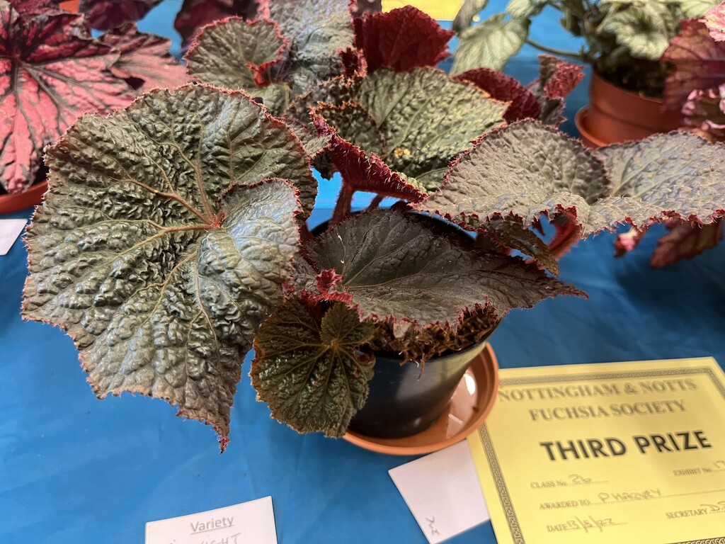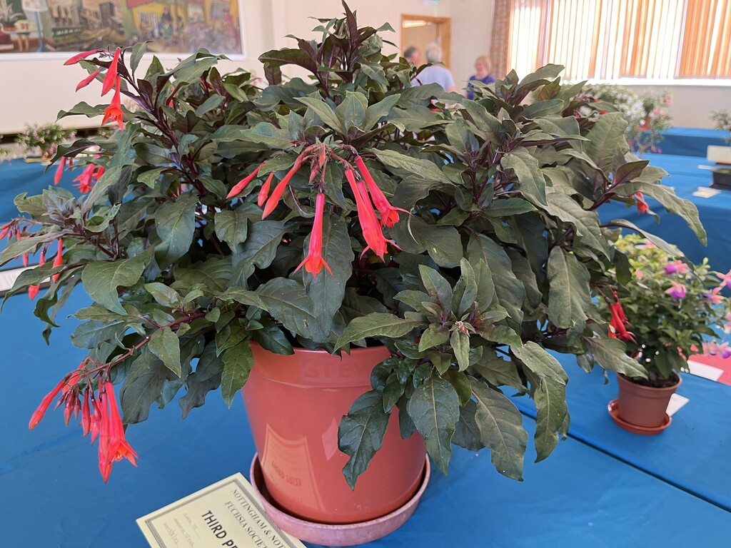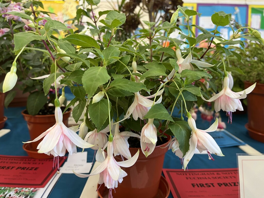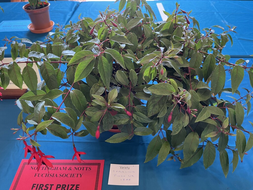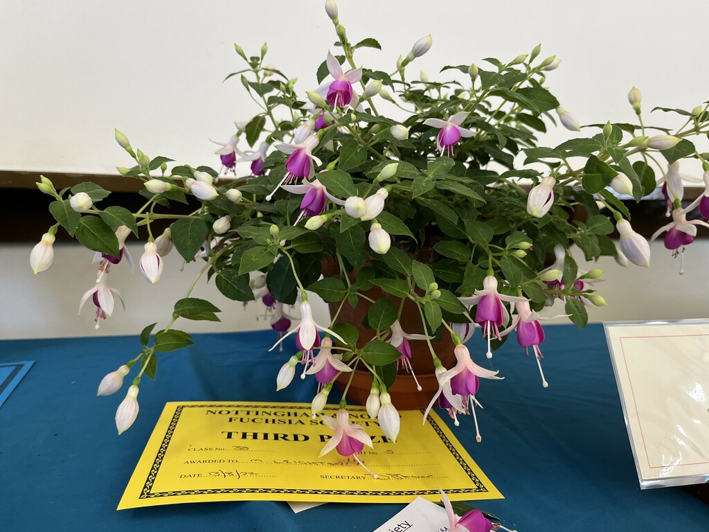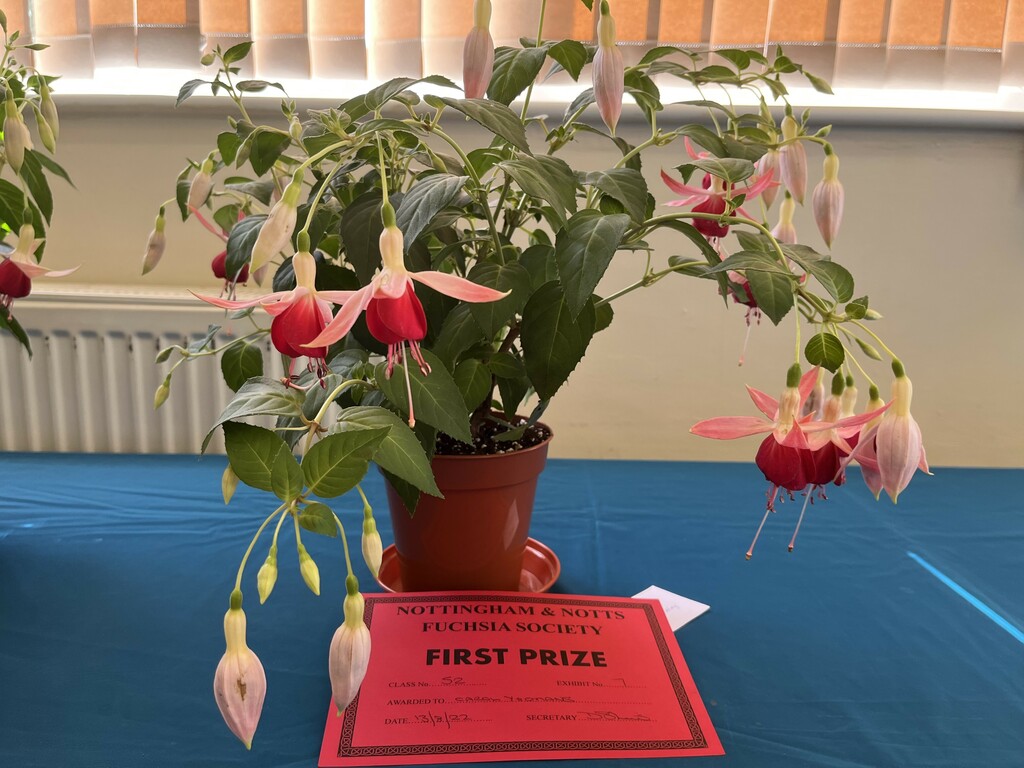 CHRISTINE COLE Nottingham & Notts Challenge Trophy Winner Class 8 HOWARD KILBOURN Christine Fenson Trophy Winner Class 9 HOWARD KILBOURN Hanslope Trophy Winner Class 11 LYNDON CLEMENTS Cliff Gadsby Memorial Trophy Winner Class 12 LYNDON CLEMENTS Arena Promotions Mark Wrixton Cup Winner Class 13 MALCOLM BEERMAN Hanslope Bowl Winner Class 14 CHRISTINE COLE Rosette 1 Winner Class 18 JAYNE DAYKIN Rosette 2 Winner Class 19 RENEE WILSON Rosette 3 Winner Class 22 DEREK SHAW Rosette 4 Winner Class 25 PETER HARVEY Christine Ann Cocking Bowl Winner Class 30 PATRICIA DYSON G H Roe Rose Bowl Winner Class 31 MALCOLM BEERMAN Nottingham & Notts Shield Winner Class 32 ROB SCOTT Rowley Trophy Winner Class 33 MALCOLM BEERMAN The Frank Otter Trophy Winner Class 34 MALCOLM BEERMAN Arena Promotions Scroll (Triphylla) Winner Class 35 HOWARD KILBOURN Joe Bragg Memorial Trophy Winner Class 38 CAROL YEOMANS Arena Promotions Scroll Winner Class 39 PATRICIA DYSON The Smith Trophy Winner Class 42 JAYNE DAYKIN Katie Sisson Bowl Winner Class 43 NIGEL HUGHES Dobson Williams Trophy Winner Class 44 CAROL YEOMANS George Roe Memorial Trophy Winner Class 45 LAWRENCE COLE Ben Calton Trophy Winner Class 49 GEOFF SMITH Harvey Sisson Bowl Winner Class 50 JUNE LEMON-SMITH Fuchsia Glass Vase (donated by Lawrence & Christine Cole) Winner Class 52 CAROL YEOMANS
