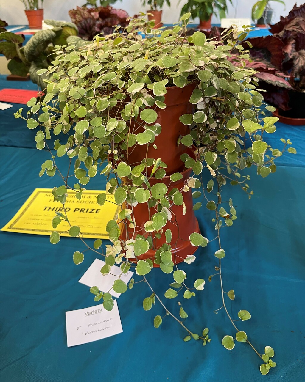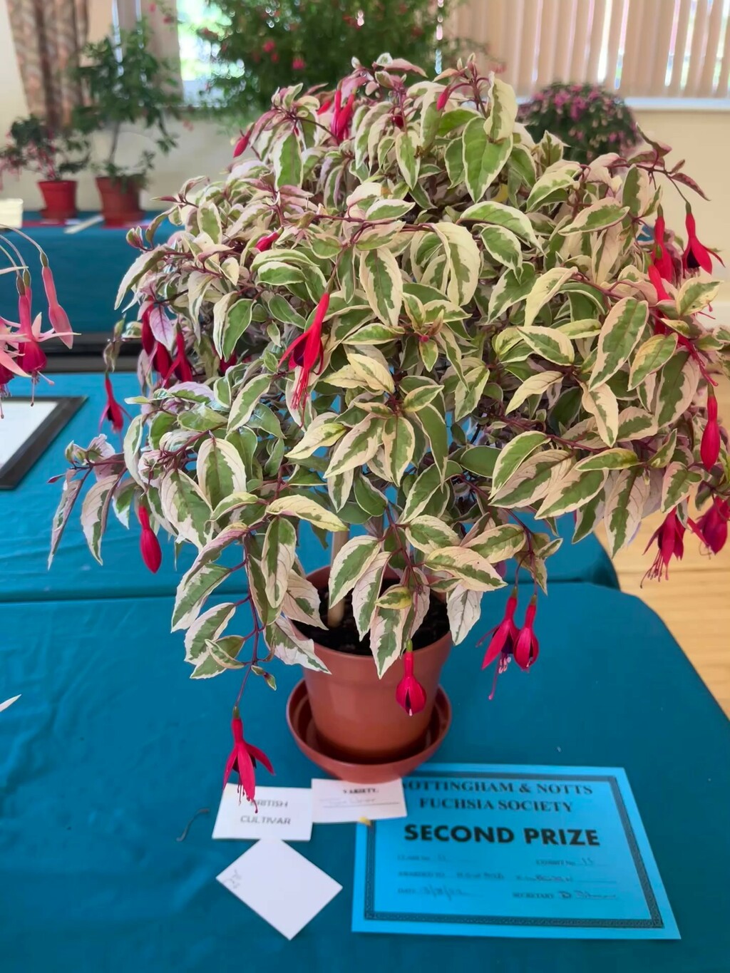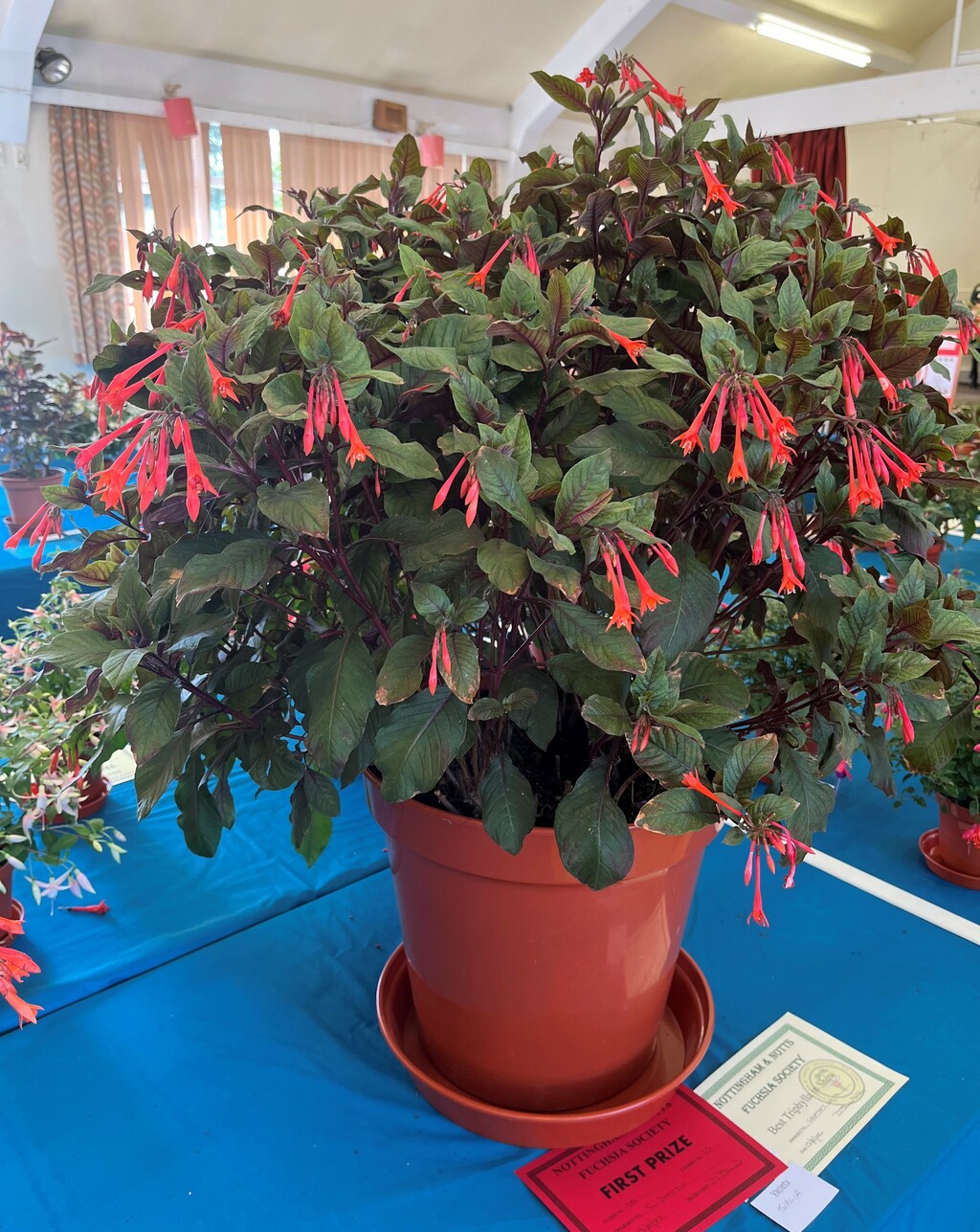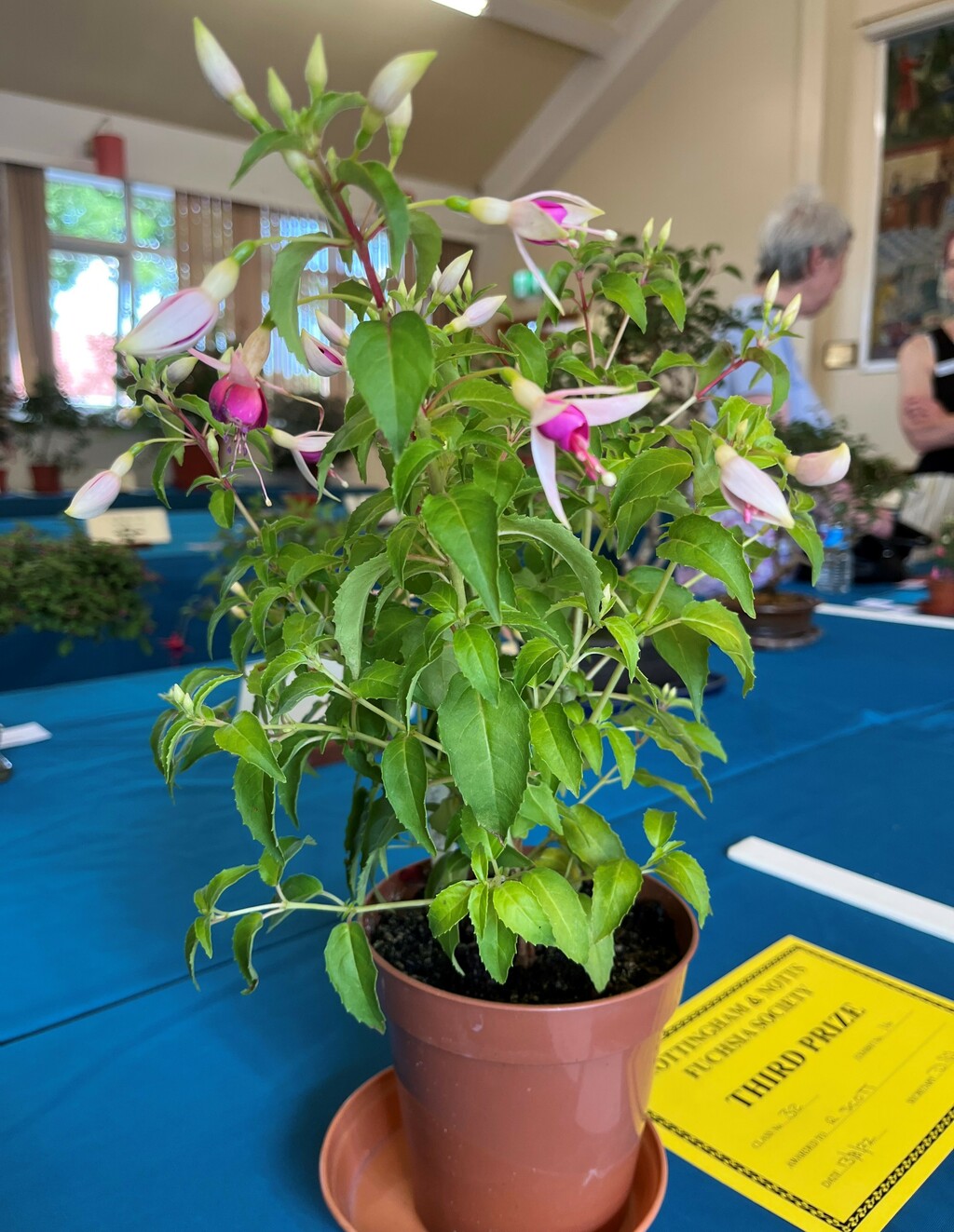 CHRISTINE COLE Nottingham & Notts Challenge Trophy Winner Class 8 HOWARD KILBOURN Christine Fenson Trophy Winner Class 9 HOWARD KILBOURN Hanslope Trophy Winner Class 11 LYNDON CLEMENTS Cliff Gadsby Memorial Trophy Winner Class 12 LYNDON CLEMENTS Arena Promotions Mark Wrixton Cup Winner Class 13 MALCOLM BEERMAN Hanslope Bowl Winner Class 14 CHRISTINE COLE Rosette 1 Winner Class 18 JAYNE DAYKIN Rosette 2 Winner Class 19 RENEE WILSON Rosette 3 Winner Class 22 DEREK SHAW Rosette 4 Winner Class 25 PETER HARVEY Christine Ann Cocking Bowl Winner Class 30 PATRICIA DYSON G H Roe Rose Bowl Winner Class 31 MALCOLM BEERMAN Nottingham & Notts Shield Winner Class 32 ROB SCOTT Rowley Trophy Winner Class 33 MALCOLM BEERMAN The Frank Otter Trophy Winner Class 34 MALCOLM BEERMAN Arena Promotions Scroll (Triphylla) Winner Class 35 HOWARD KILBOURN Joe Bragg Memorial Trophy Winner Class 38 CAROL YEOMANS Arena Promotions Scroll Winner Class 39 PATRICIA DYSON The Smith Trophy Winner Class 42 JAYNE DAYKIN Katie Sisson Bowl Winner Class 43 NIGEL HUGHES Dobson Williams Trophy Winner Class 44 CAROL YEOMANS George Roe Memorial Trophy Winner Class 45 LAWRENCE COLE Ben Calton Trophy Winner Class 49 GEOFF SMITH Harvey Sisson Bowl Winner Class 50 JUNE LEMON-SMITH Fuchsia Glass Vase (donated by Lawrence & Christine Cole) Winner Class 52 CAROL YEOMANS