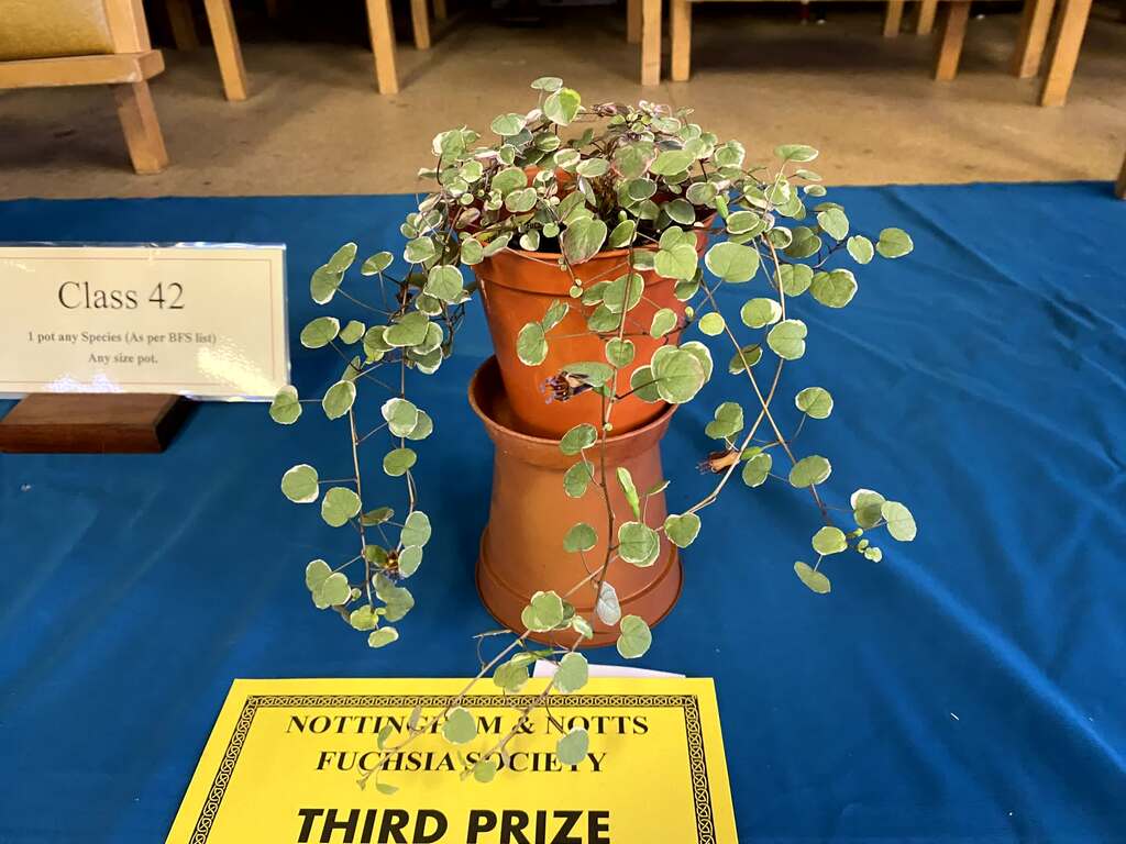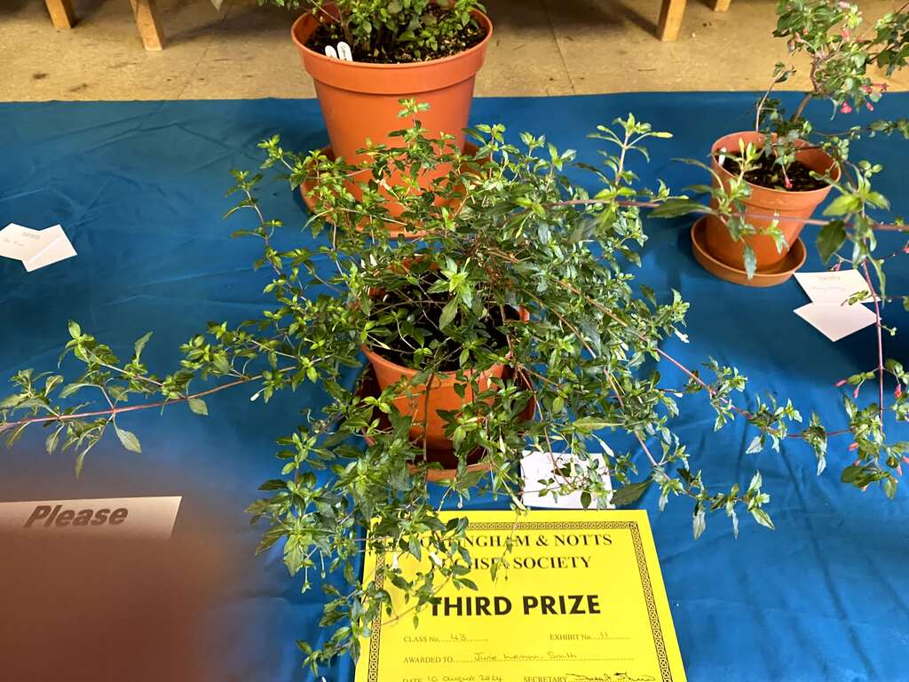 Trophies & Winners Trophies Classes Winner June Lemon Trophy Winner Class 3 CAROL YEOMANS Hill Top Trophy Winner Class 4 HARPER MURPHY Christine Fenson Trophy Winner Class 9 MALCOLM BEERMAN Hanslope Trophy Winner Class 11 MALCOLM BEERMAN Cliff Gadsby Memorial Trophy Winner Class 12 MALCOLM BEERMAN Arena Promotions Mark Wrixton Cup Winner Class 13 MALCOLM BEERMAN Hanslope Bowl Winner Class 14 LYNDON CLEMENTS Thomas Price Vase Winner Class 16 MALCOLM BEERMAN Bob Pacey Memorial Trophy Winner Class 17 DEREK SHAW Rosette 1 Winner Class 18 RENEE WILSON Rosette 3 Winner Class 22 DEREK SHAW Rosette 4 Winner Class 25 ROB SCOTT Christine Ann Cocking Bowl Winner Class 30 LYNDON CLEMENTS G H Roe Rose Bowl Winner Class 31 CAROL YEOMANS Nottingham & Notts Shield Winner Class 32 ROB SCOTT Rowley Trophy Winner Class 33 MALCOLM BEERMAN The Frank Otter Trophy Winner Class 34 MALCOLM BEERMAN Arena Promotions Scroll (Triphylla) Winner Class 35 NIGEL HUGHES Joe Bragg Memorial Trophy Winner Class 38 ROB SCOTT Arena Promotions Scroll Winner Class 39 MALCOLM BEERMAN The Smith Trophy Winner Class 42 GEOFF SMITH Katie Sisson Bowl Winner Class 43 NIGEL HUGHES Dobson Williams Trophy Winner Class 44 CAROL YEOMANS George Roe Memorial Trophy Winner Class 45 CAROL YEOMANS Ben Calton Trophy Winner Class 49 GEOFF SMITH Harvey Sisson Bowl Winner Class 50 DEREK SHAW Trophies Winner Nottingham and Notts Silver Salver & Rosette Best Fuchsia Exhibit or Plant in Show MALCOLM BEERMAN BFS Bronze Medal Best Fuchsia in Members Classes MALCOLM BEERMAN B.F.S. Crested Spoon Runner Up to Best in Members classes